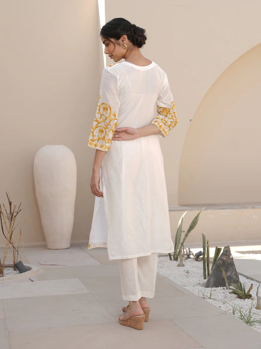 WISTERIA WHITE CHANDERI EMBROIDERED SUIT SET